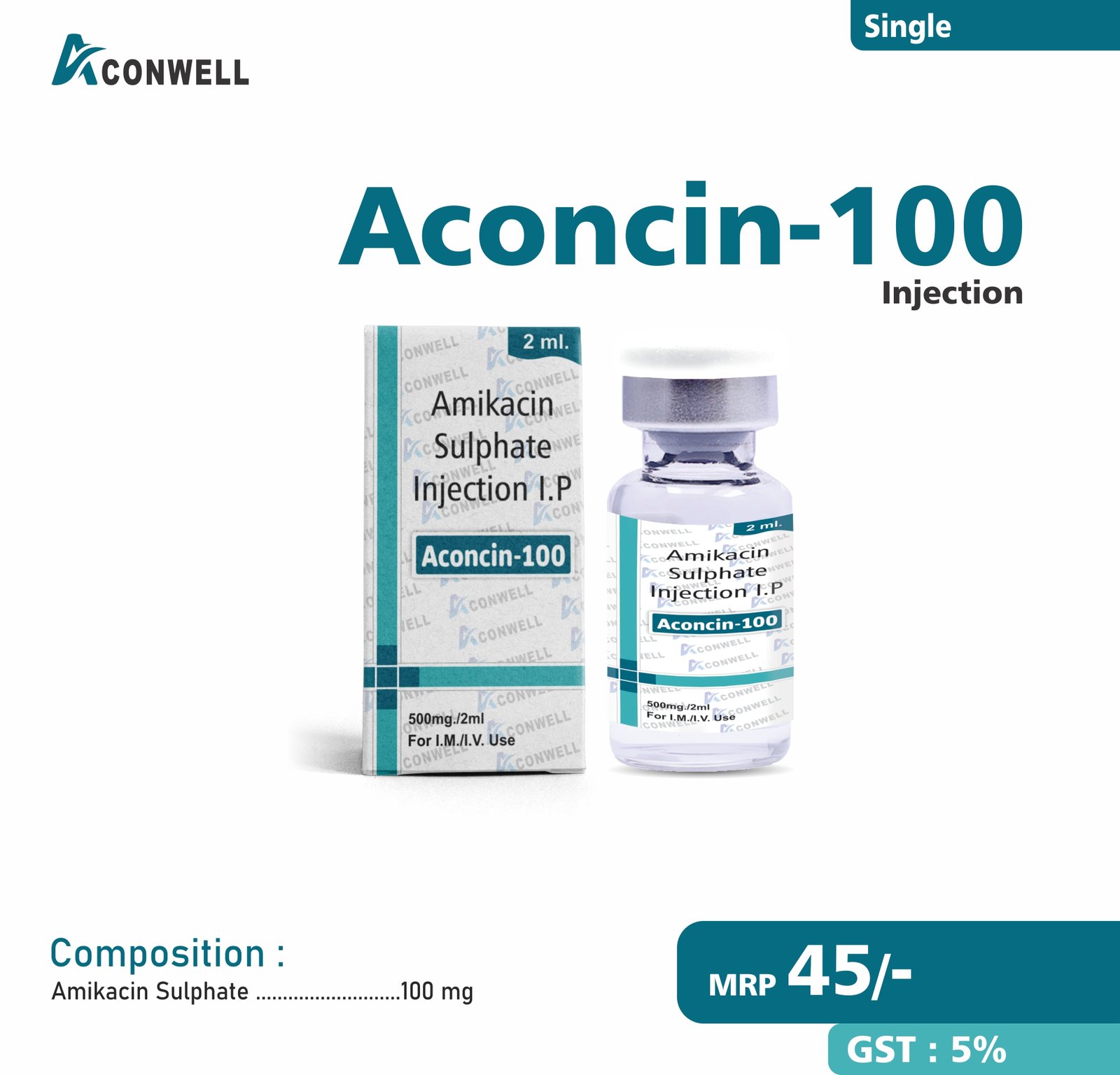Composition : Amikacin Sulphate 100 mg