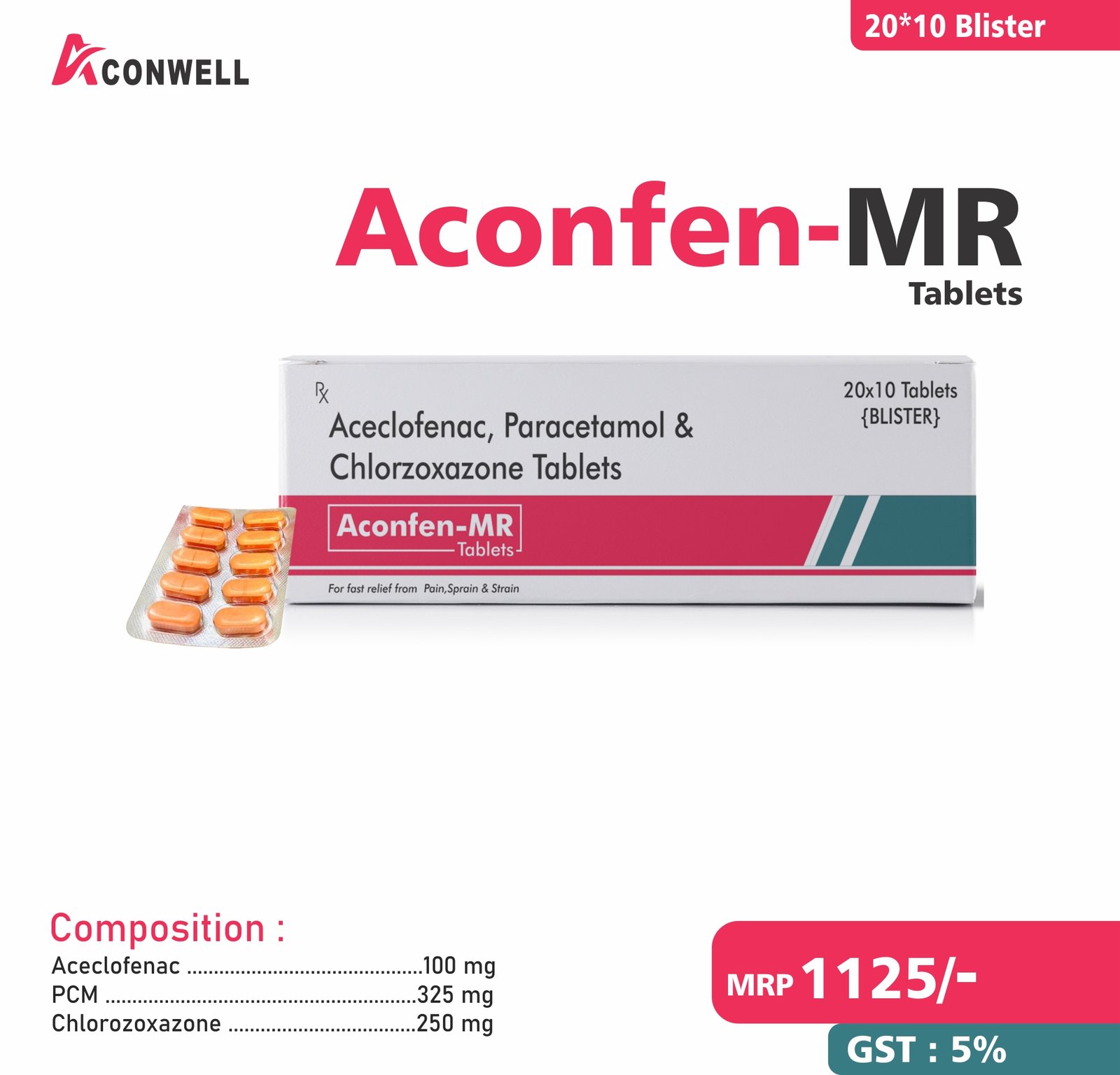 Composition : Aceclofenac 100 mg, PCM 325 mg & Chlorozoxazone 250 mg
