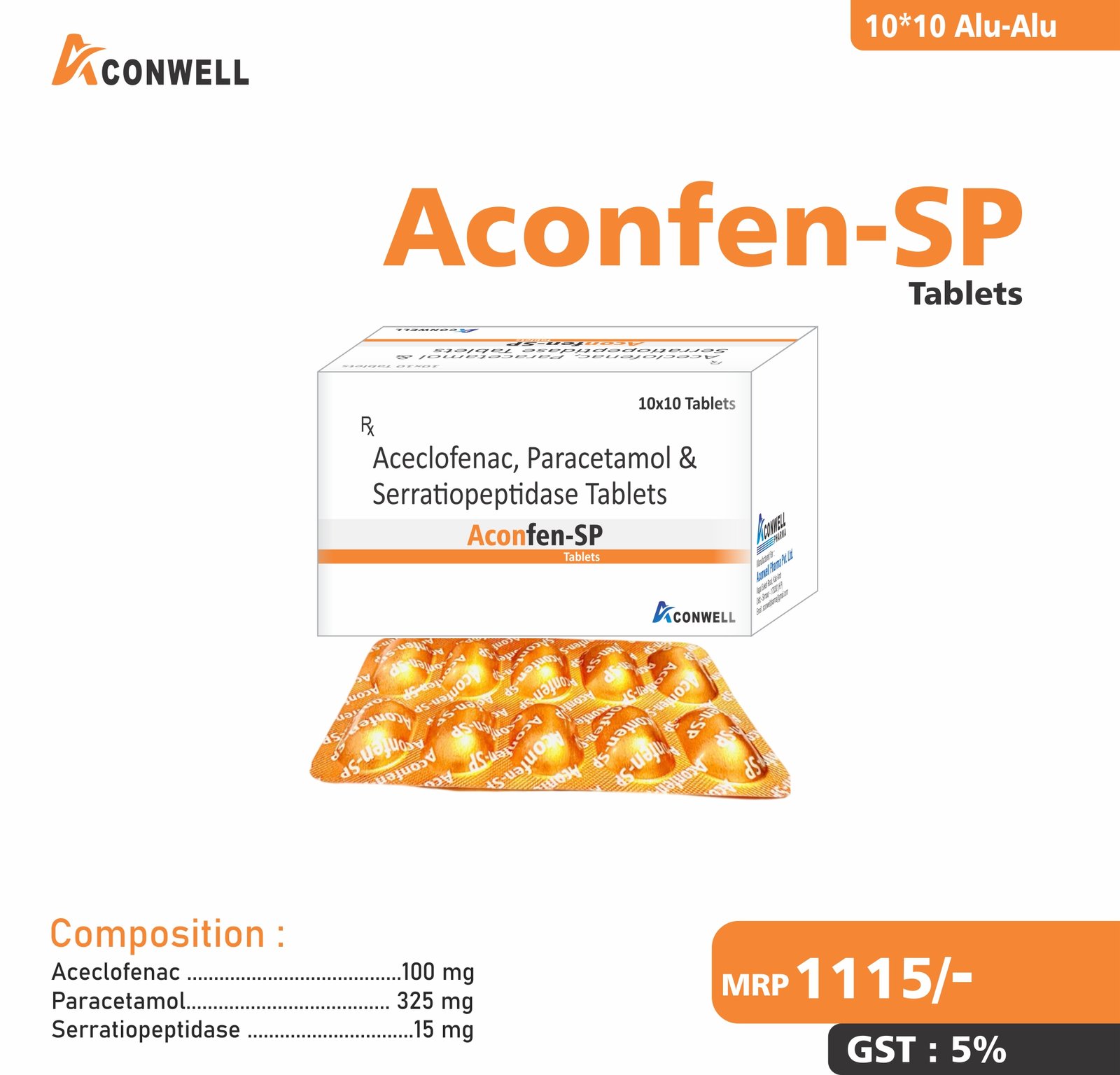 Composition : Aceclofenac 100 mg, Paracetamol 325mg & Serratiopeptidase 15 mg