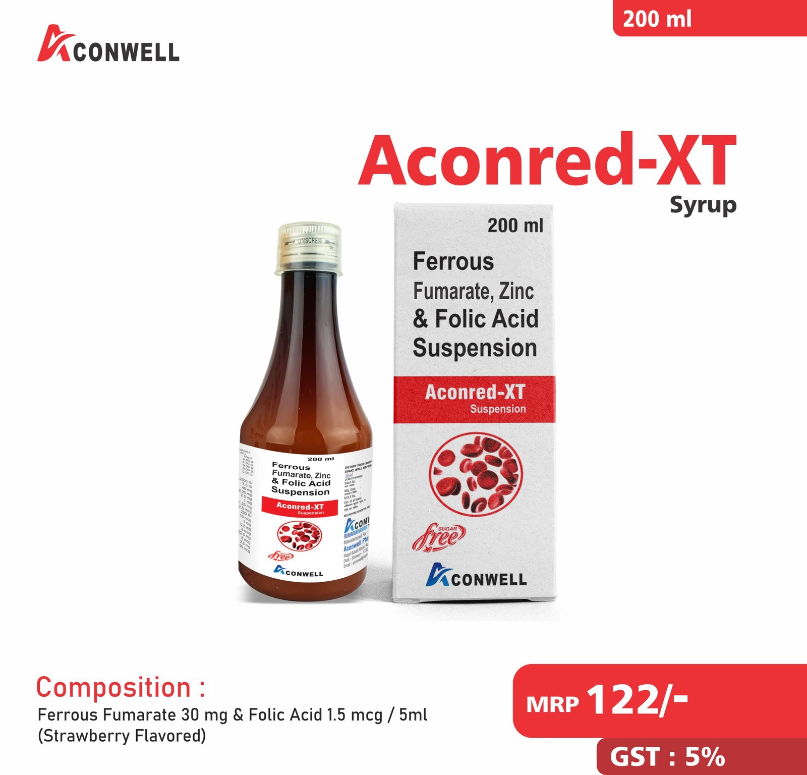 Composition : Ferrous Ascorbate 30 mg & Folic Acid 1.5 mcg / 5ml (Strawberry Flavored)