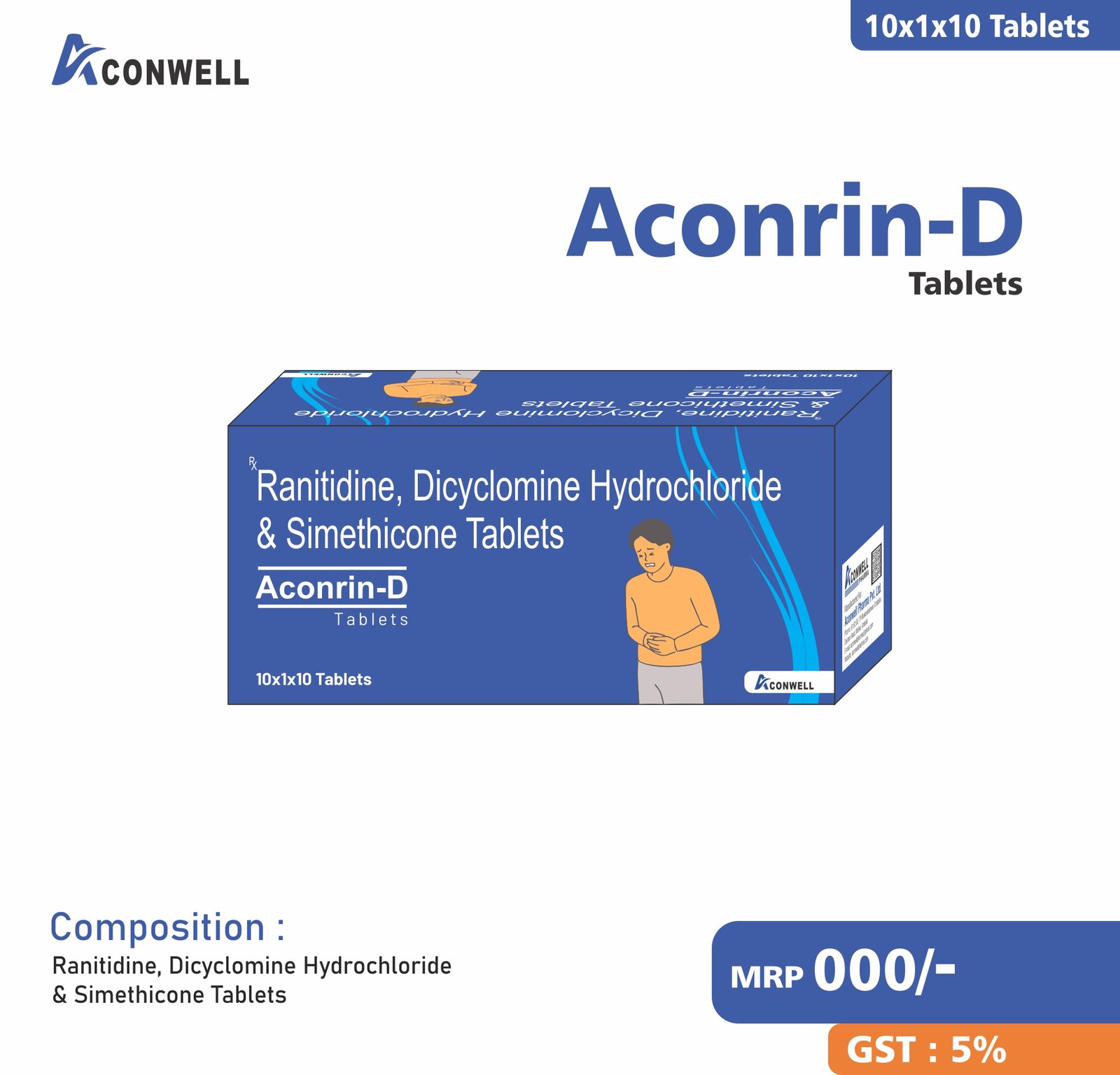 Composition : Ranitidine, Dicyclomine Hydrochloride & Simethicone Tablets