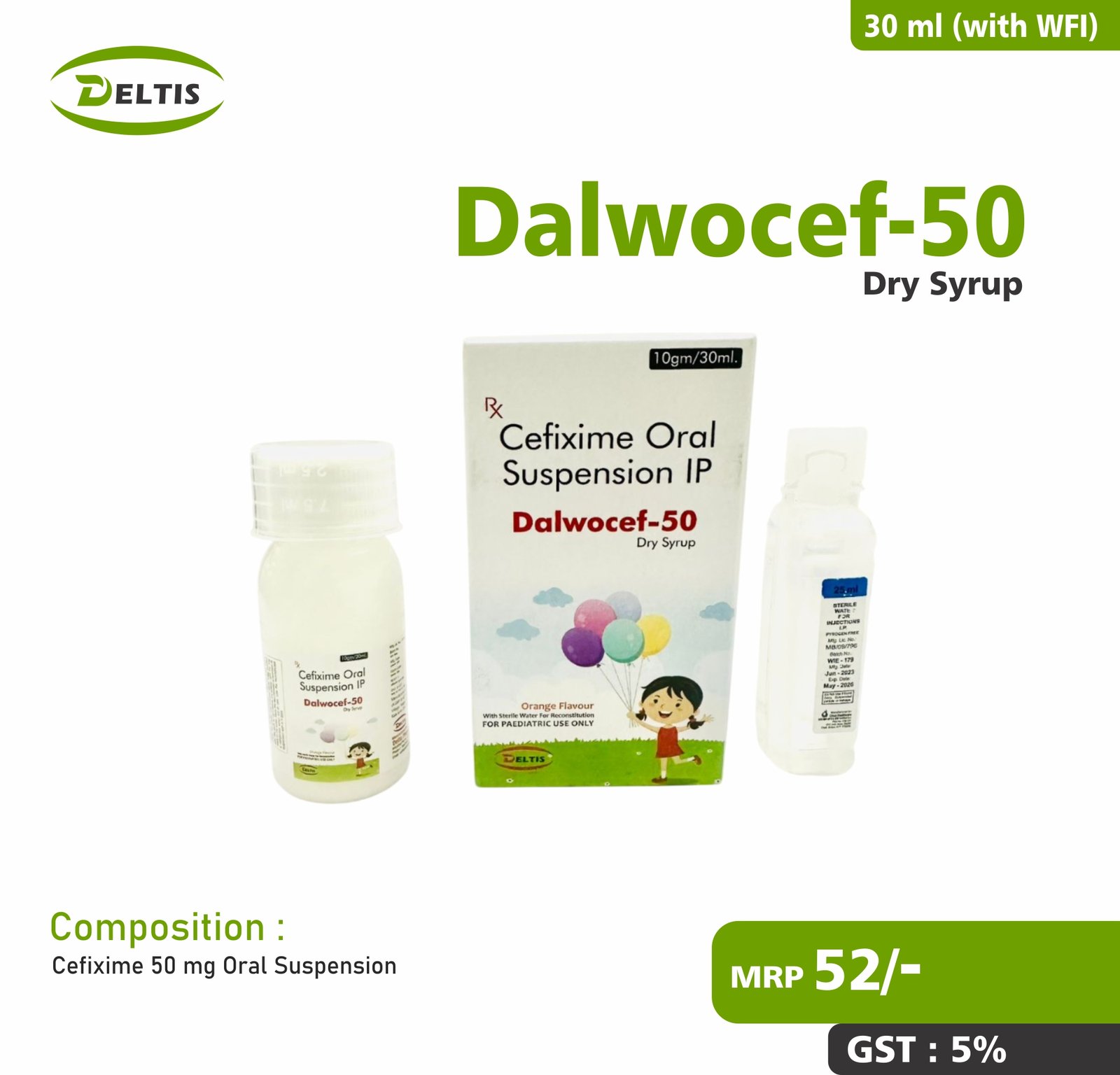 Composition : Cefixime Trihydrate 50 mg