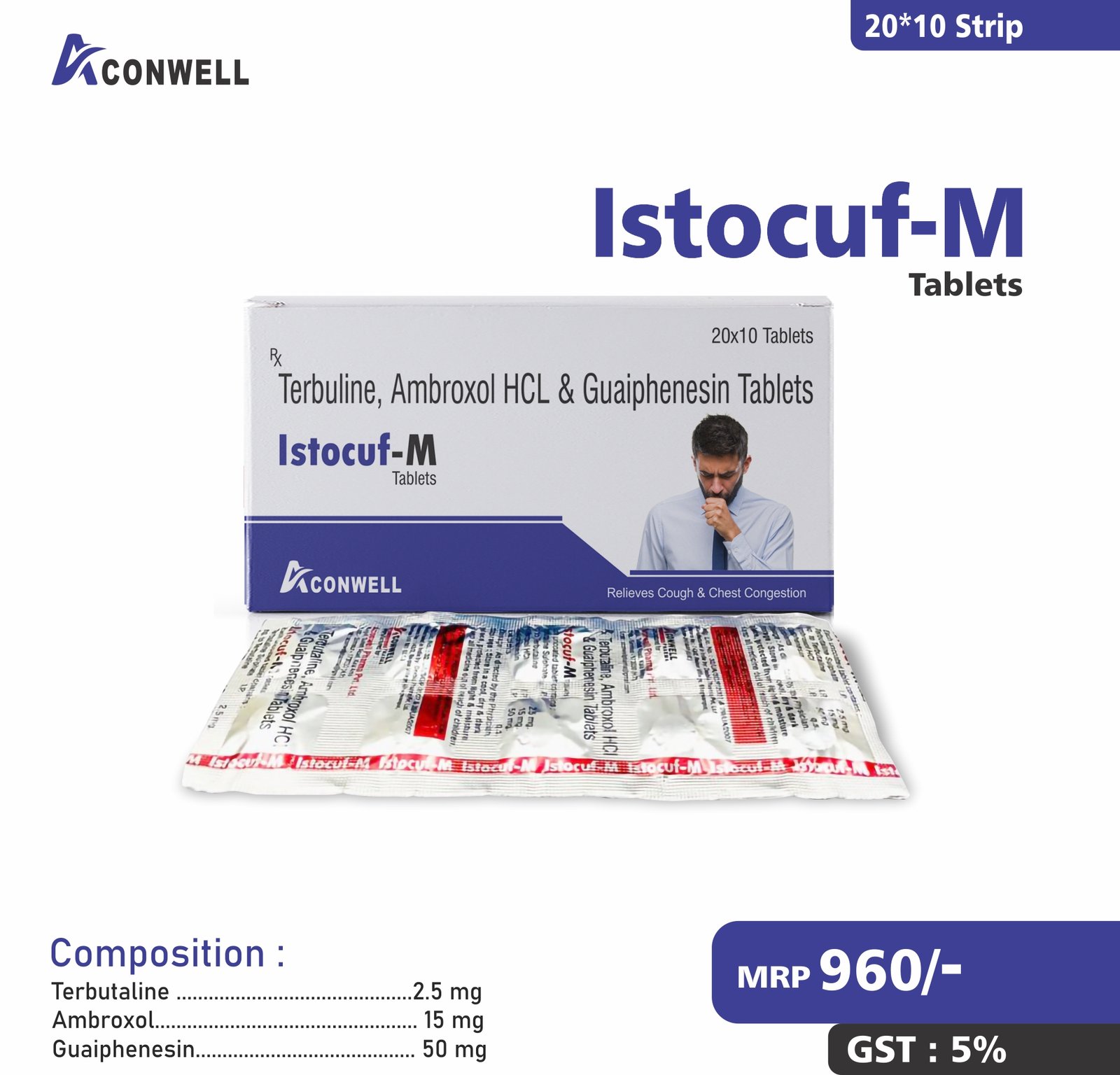 Composition : Terbutaline 2.5 mg, Ambroxol 15 mg & Guaiphenesin 50 mg