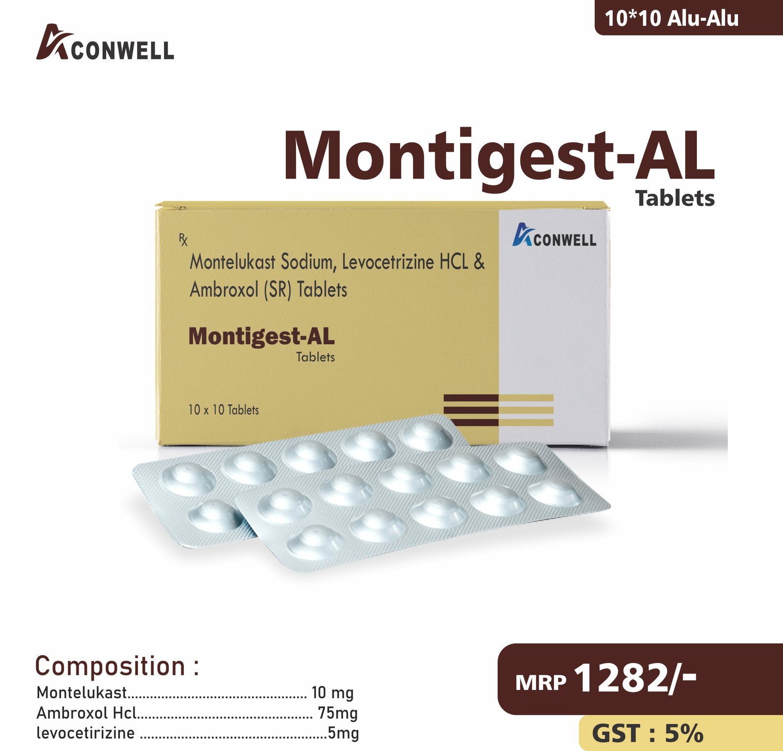 Composition : Montelukast 10mg, Ambroxol Hcl 75 mg & Levocetirizine 5mg