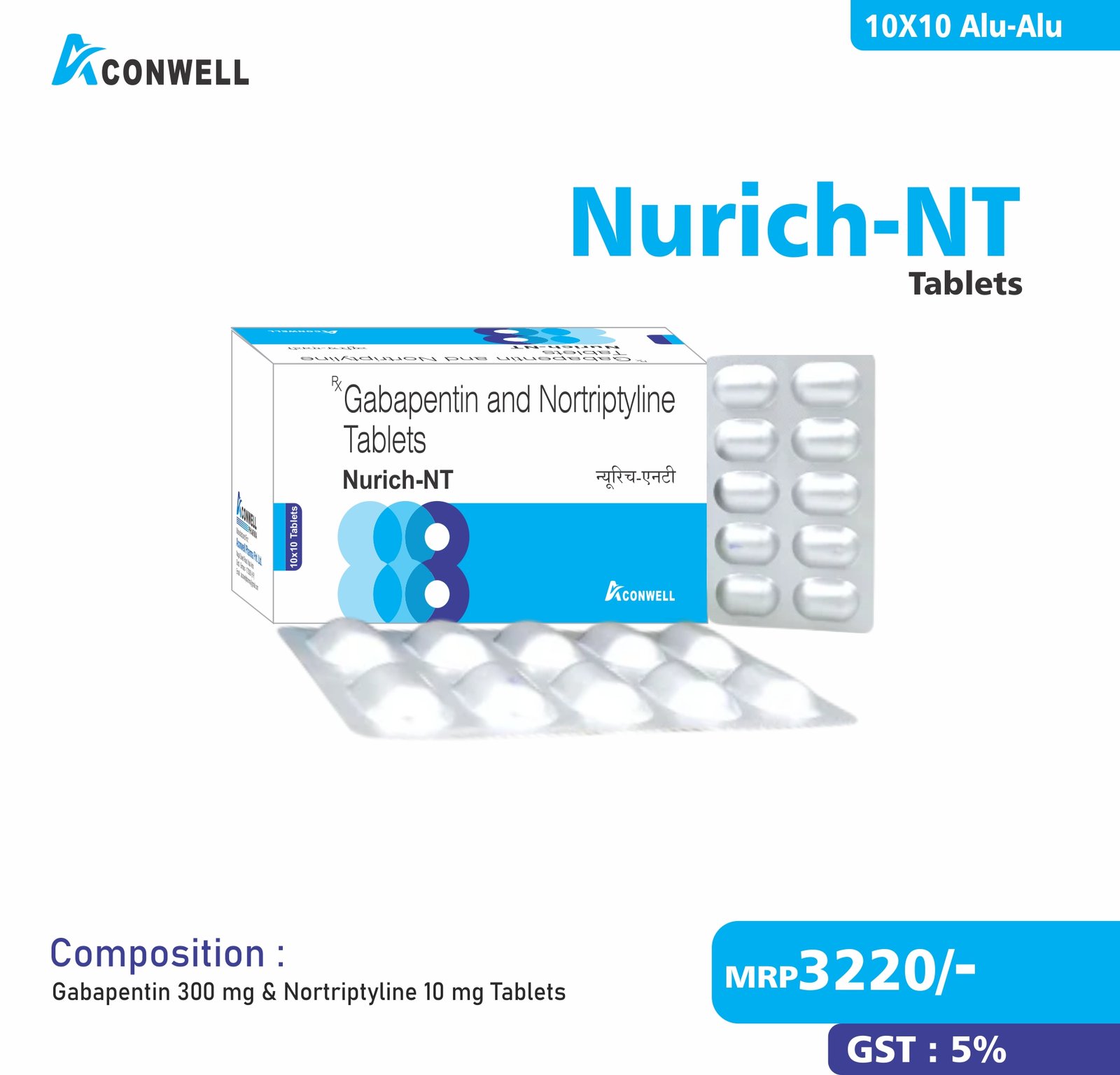 Composition : Gabapentin 300 mg & Nortriptyline 10 mg Tablets